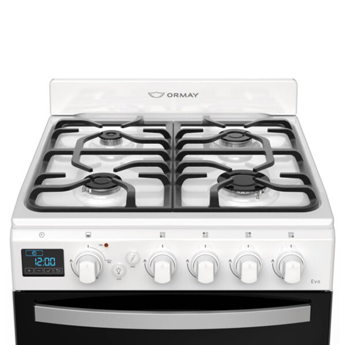 EVO, la sofisticación máxima, de toda la línea de cocinas Ormay. Desarrollada bajo estrictos estándares de diseño, eficiencia e innovación, esta cocina ofrece versatilidad, durabilidad y las más completas prestaciones para múltiples necesidades en la cocina. Ideal para hogares donde la gastronomía y el cocinar ocupan un lugar preponderante de su ritmo de vida. Multigás. Grill eléctrico. Timer digital touch. Pirómetro digital. Rejillas de fundición. Encendido en horno y hornallas. Luz en horno. Cajón parrilla deslizable. Horno Easy to Clean. Eficiencia horno A+. Eficiencia hornallas A. Válvula de Seguridad en horno y hornallas.
