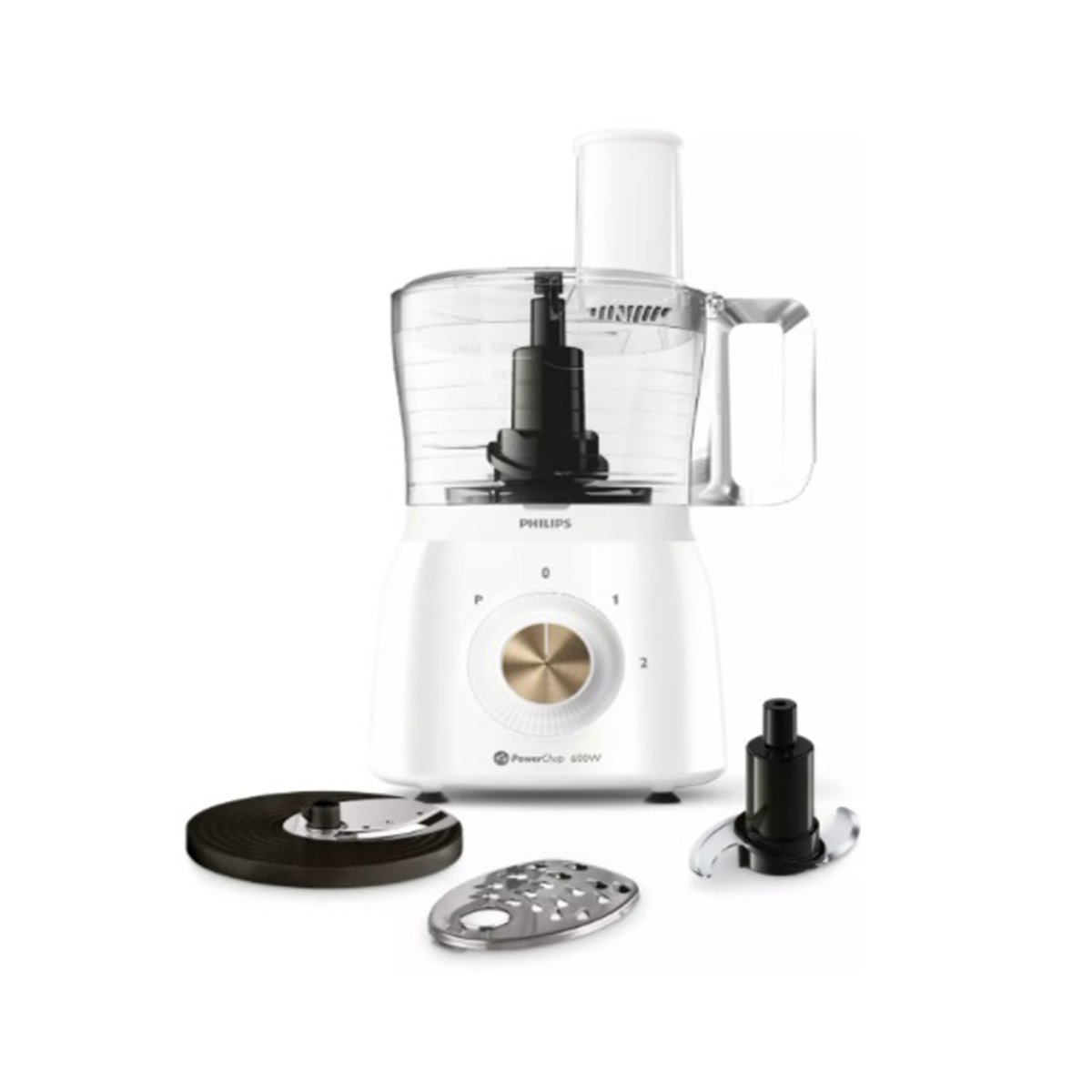 La procesadora de alimentos Philips 3 en 1 cuenta con un recipiente de la picadora grande y 2 inserciones de disco de acero inoxidable. Prepare fácilmente comidas caseras para toda la familia. Incluye: cuchilla picadora, disco rebanador grueso y disco triturador grueso.